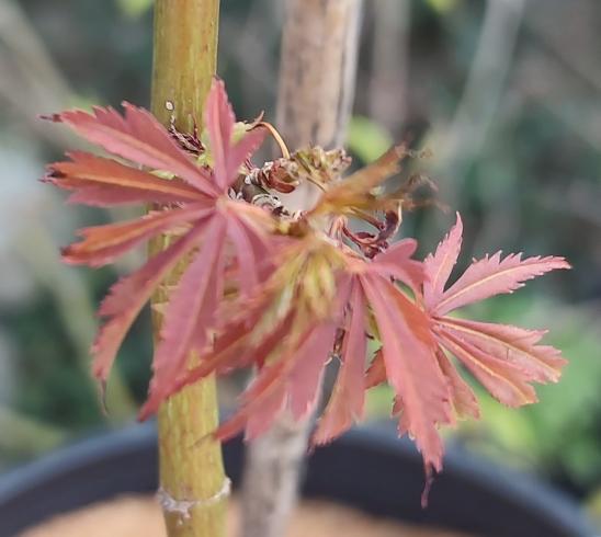 Jerre Schwartz is named for his mother, Jerre. This is a witch's broom that leafs out as a pinkish red fading off to green. Fall can be orange and red. One of the remarkable things about this cultivar is the bright green stems and twigs.